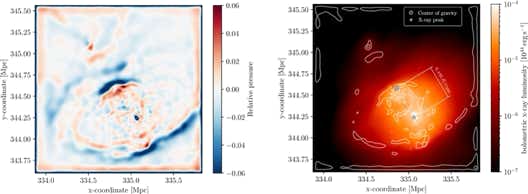 The process of merging galaxy clusters leads to several interesting physical circumstances. As a consequence of the compression of the intracluster medium, shock waves originate due to the infalling galaxy subclusters towards their potential minimum. The effects of cluster mergers, simulated by the cosmological, hydrodynamic, n-body simulation "Magneticum", were used for further analysis. In this work a closer look was taken into the presence of X-rays and the Sunyaev-Zeldovich Effect in conjunction with the appearance of shocks. More precisely: The displacement of their radiation centroids in comparison to the center of gravity of the most massive subcluster under the condition, that shocks have been detected. The main goal was to find out, whether these X-ray and SZ centroid offsets relate in distance and distribution to the appearance of shock waves in merging galaxy clusters.