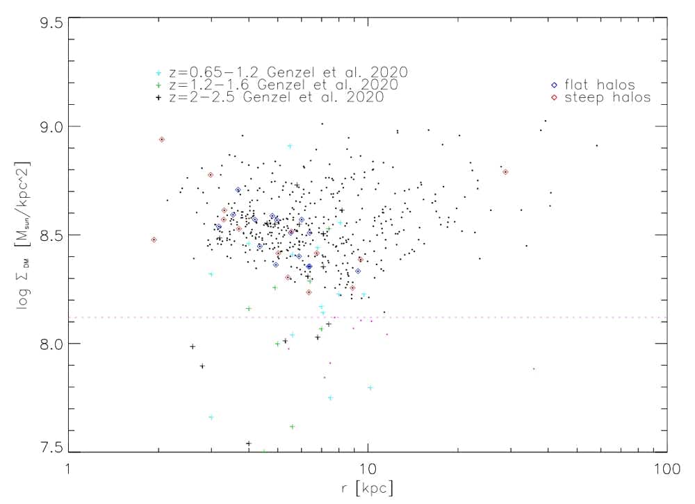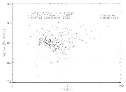 In this thesis, I analyzed the inner density of the dark matter halos in the Magneticum simulations and compared it with the conclusions in the observations from Genzel et al. 2020. They propose that cores form at high redshift by expanding their inner dark matter content, which results in a low inner dark matter surface density. The simulation data indicates that cores form at low redshift without altering the inner dark matter surface density in a relevant manner, contradictory to Genzel et al. (2020). Halos with a low inner dark matter surface density do also not show a tendency towards flat distributions.