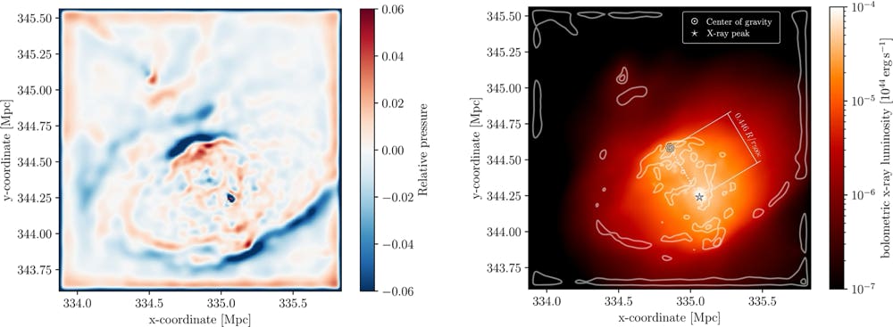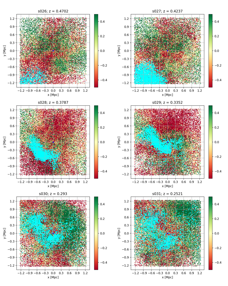 The intracluster gas (ICM) in galaxy cluster experiences a lot of processes that change its temperature, density, velocity etc. For example, shockwaves created by the collision of the gas belonging to an infalling substructure and the gas of the main cluster or AGN feedback bubbles. These effects are recreated in cosmological, hydrodynamical n-body simulations like “Magneticum”. In this work gas, DM and star particles of an infalling substructure are traced to reveal the different behavior they exhibit during a merger. Gas slows down due to experienced pressure and mixes with the main cluster gas, while DM passes through the clusters core several times before it mixes. The gas temperature, density, entropy, and metallicity are recorded, showing that the gas experiences heating and compression during the infall, that can be interpreted as the gas being shocked. A shock front is found in radial profiles of temperature, from which the Mach number can be derived. The metallicity is increasing during the merger, but it can be noticed, that it is higher in the main cluster than in the infalling substructure, from which they could be distinguished.