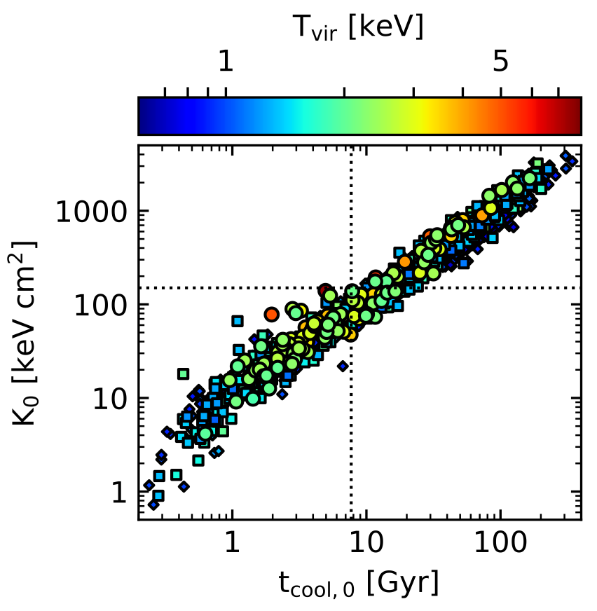The nomenclature Cool Core (CC) or Non-Cool Core (NCC) Cluster is used to classify clusters according to their different thermodynamical properties of the Intra-Cluster Medium (ICM). Cool Core Cluster show short central cooling times, low central entropies, temperature drops towards their centers and high central electron number densities. Non-Cool Core Clusters lack of these properties and thus reveal longer central cooling times, higher central entropies and lower central electron number densities. Observations of cluster samples have revealed that CC and NCC clusters are nearly equally distributed with a slight trend towards a higher NCC frequency. In this thesis, the fraction of CC and NCC clusters in the Magneticum Pathfinder Simulation is investigated and further thermodynamical properties of the ICM are examined using the classification of CC and NCC clusters.