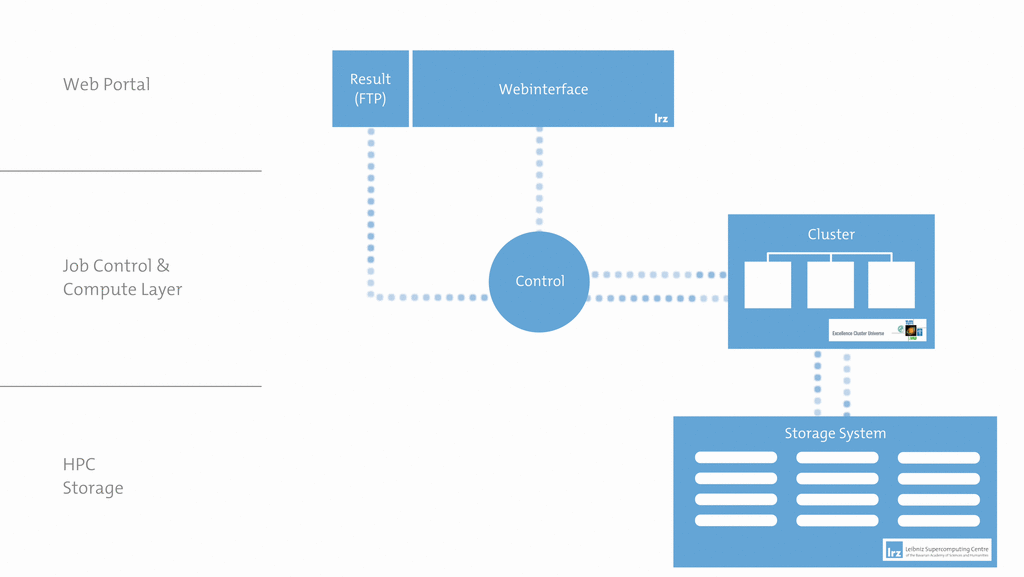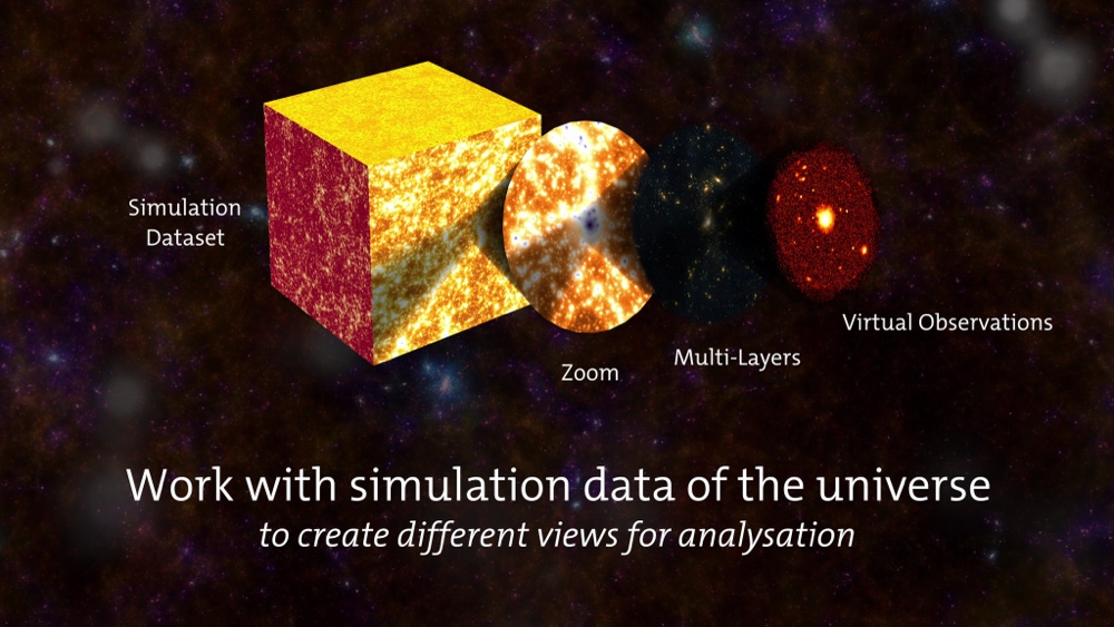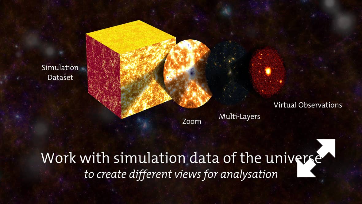 In close collaboration with the Excellence Cluster Universe and the Leibniz Supercomputing Centre (LRZ) of the Bavarian Academy of Sciences, we now initiated "Cosmowebportal". This unique data centre for cosmological simulations provides access to the results of the world's most extensive set of cosmological hydrodynamic simulations, Magneticum Pathfinder. The complete simulations are saved at the LRZ in Garching on a data store for large datasets, which is connected to the supercomputer SuperMUC. Using a web interface, interested scientists can, for example, select objects from the raw simulation data, process it and even create virtual observations mimicking existing or future space telescopes.