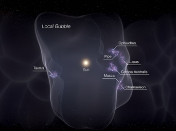 Artist's impression of the Local Bubble with star forming regions on the surface and the Sun in the centre. Image: Leah Hustak, Space Telescope Science Institute.